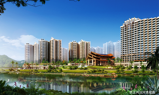 項目位于五指山市區東部翡翠新區,距離老城區步行約15分鐘,可享受市區的醫療、酒店、商業等配套條件。項目由臨河地塊(4386號)和畔山地塊(4383號)組成,兩地塊間相距1600米,地理位置和景觀資源極其優越。兩地塊總占地面積約184畝,容積率2.05,總計容面積約22萬方。