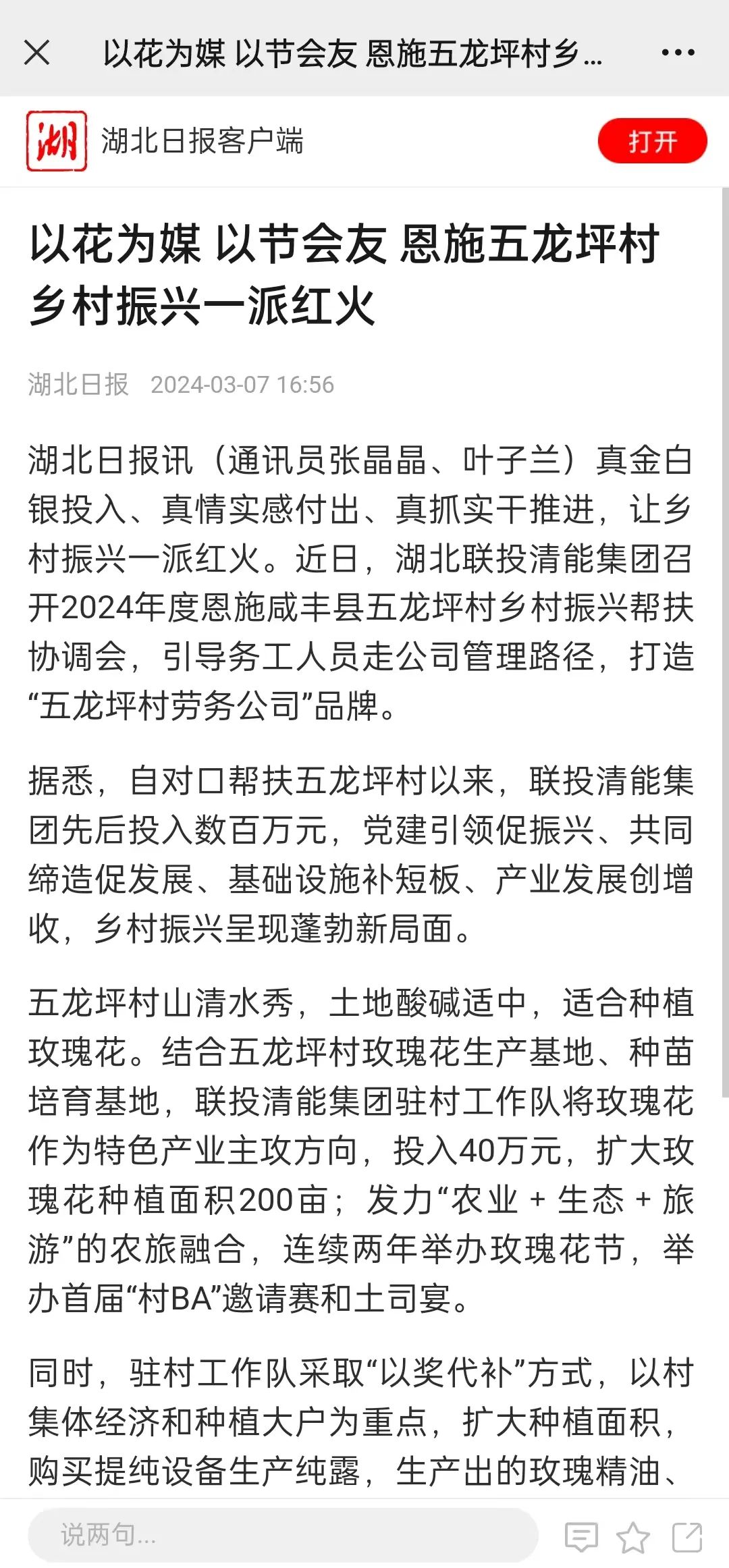 此外,湖北日報、長江日報、長江云、黨員生活雜志也關注湖北聯投清能駐村幫扶最新工作動態。